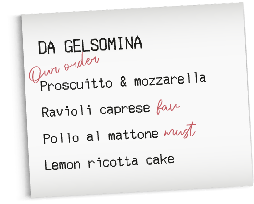 For those wanting to lean into the rural and wilder part of Capri, drive over to Da Gelsomina. Start with wine grown in their own vineyard before indulging in traditional ravioli caprese and an incredible wood-fired chicken.